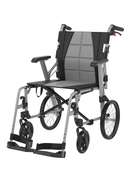 The Aspire Socialite Folding Wheelchair – Attendant Propelled is one of the lightest transport chairs available, designed for short trips, outings, and appointment with a sleek European Aesthetic and practical comfort features.