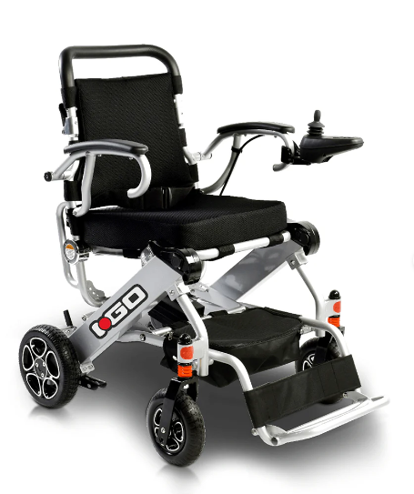The Pride iGo Folding Power Wheelchair is a compact, travel-ready electric wheelchair designed for active users who need portability, comfort, and independence. It folds in seconds, weighs under 20 kg, and offers smooth control with front suspension and lithium-ion batteries.